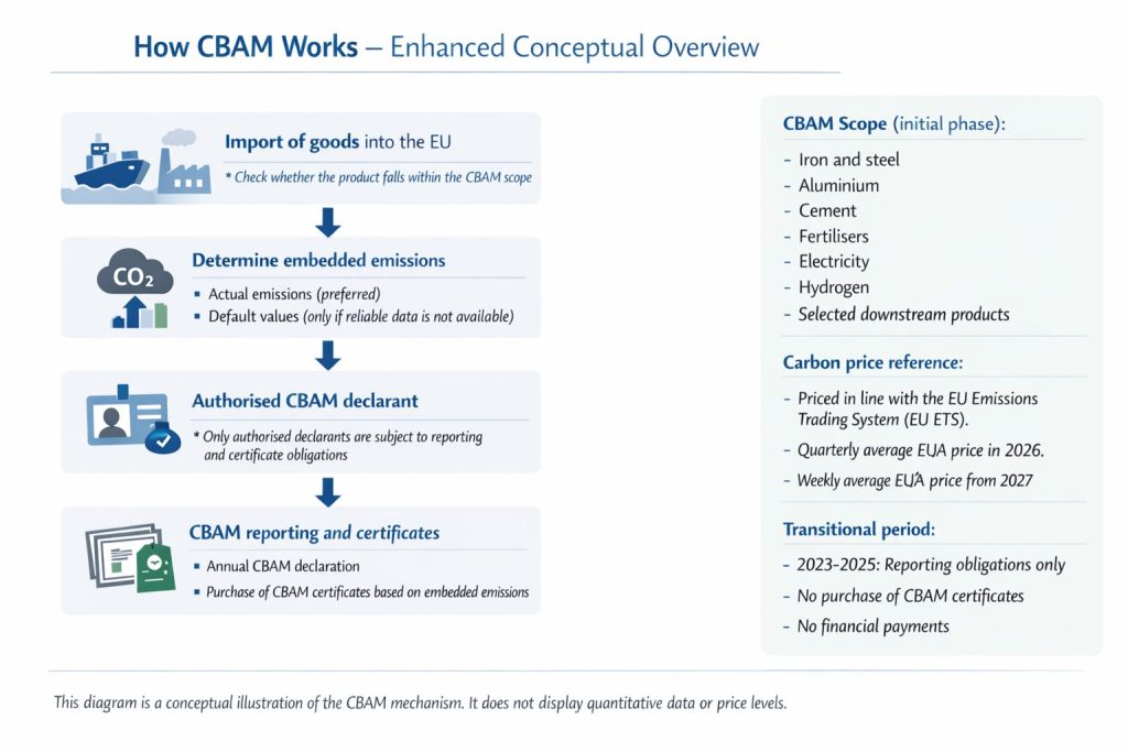 От 1 януари 2026 г. Механизмът за корекция на въглеродните емисии на границата, CBAM, започва да има директен финансов ефект. След преходния период 2023–2025 отчетността вече не е достатъчна, въглеродните емисии на определени вносни стоки се превръщат в разход.